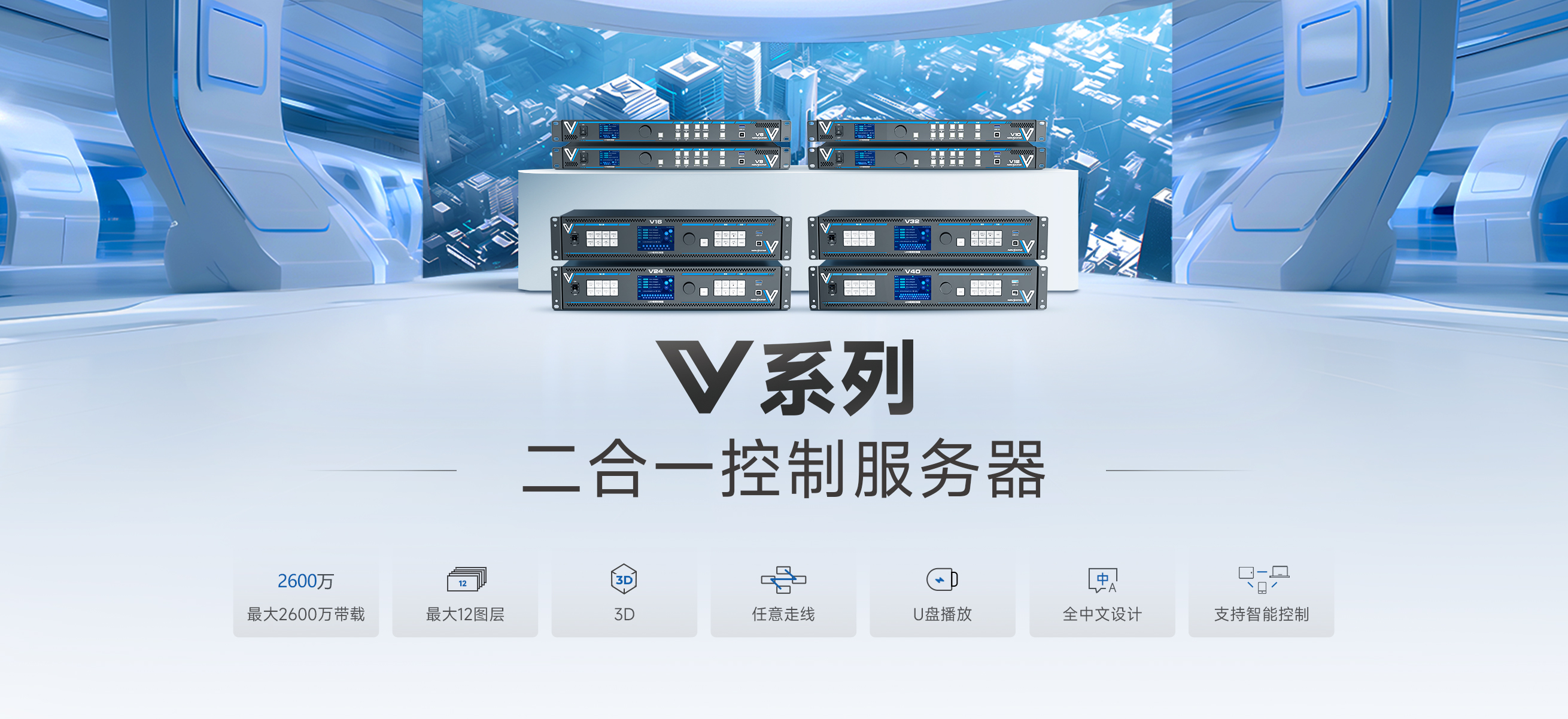 視頻控臺、無縫切換器、多畫面拼接處理器、視頻控制器、4K獨(dú)立主控、智能管理軟件等,強(qiáng)強(qiáng)聯(lián)手,高度集成,...